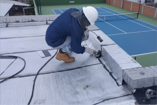 Impermeabilización Acrílica (Sistemas Líquidos): Membrana monolítica sin uniones, adaptable a cualquier forma, con alta reflectividad solar que ayuda a reducir la temperatura interna.Recomendado para terrazas transitables, mantenimiento de